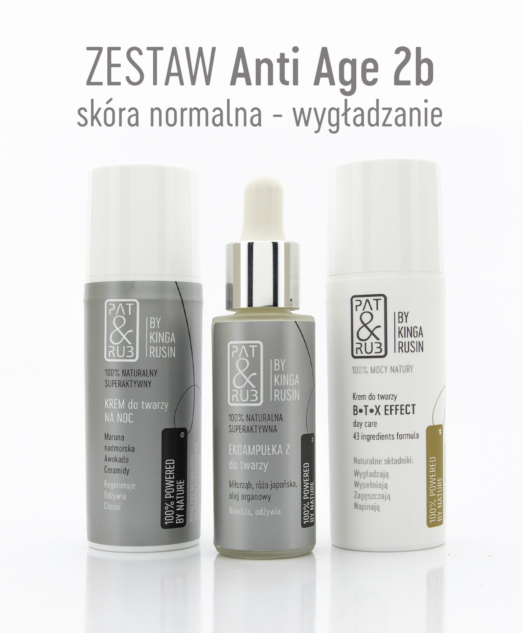 Zestaw HAMUJĄCY PROCESY STARZENIA, ujędrniający i napinający skórę, dobrany specjalnie dla normalnej cery. Zastosowany na Ekoampułkę 2, czyli nasze serum regenerujące (bogate w witaminy, polifenole i kwasy tłuszczowe ), 43-składnikowy (!) krem BTX EFFECT wygładza, napina i zagęszcza skórę oraz wypełnia drobne zmarszczki. Zawarte w kremie BTX EFFECT naturalne substancje, m.in. Heksapeptyd acetylowy, Spilantol, Nio oligo 3D wykazują działanie podobne do boto xu. Razem z innymi składnikami aktywnymi scalają komórki skóry opóźniając jej starzenie. Superaktywny krem na noc z m.in. kompleksem ceramidowym i ektoiną pobudzi mikrokrążenie i opóźni procesy starzenia, wyciszy i ustabilizuje, głęboko nawilży, poprawi kondycję i napięcie skóry.