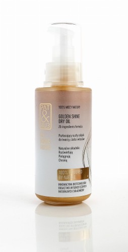GOLDEN SHINE DRY OIL - FACE, BODY & HAIR (formuła 26-składnikowa) to suchy olejek do twarzy, skóry i włosów dający oszałamiający efekt rozświetlenia dzięki złocistym drobinkom miki (z etycznych źródeł). Nie zostawia tłustych plam! Zawiera emolienty silicone-like. Idealny na letnie dni czy wieczorne imprezy. Rewelacyjne składniki aktywne zapewniają skuteczną pielęgnację i ochronę zarówno skóry jak i włosów.